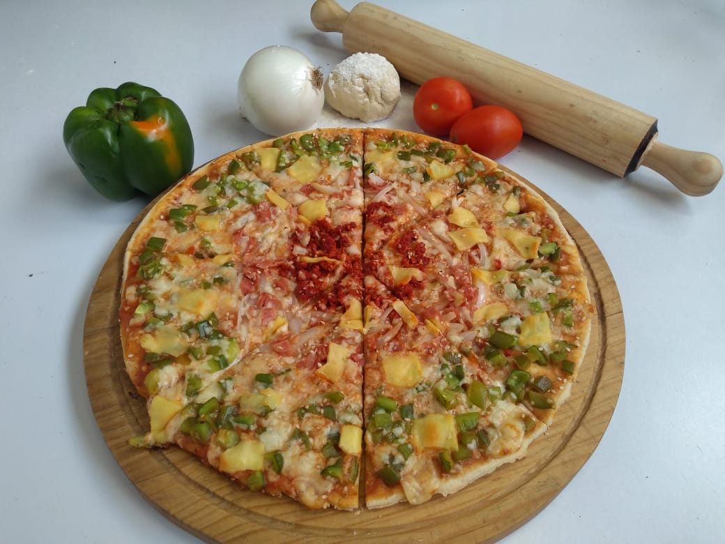 Santa madre, pedí unas pizzas y están de 10, calientitas, hawaiana y de atún, como que las estiran con polenta la masa porque tiene un toquecito crujiente en la base, el queso no es corriente, me gasté menos de lo que me gastaría en dominos y pizza hut. No quiero que se acabe la pizza de lo buena que está.