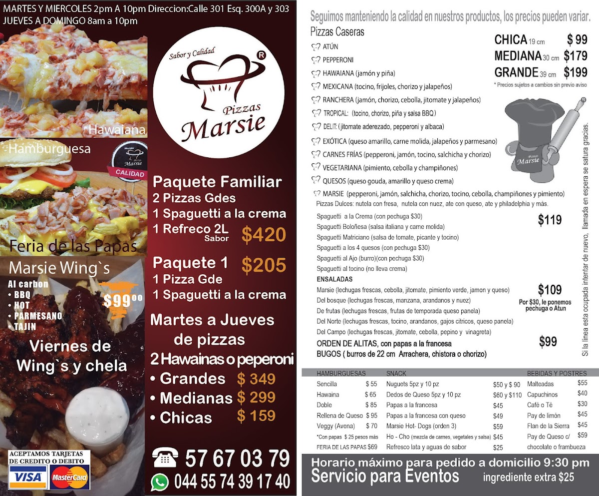 MARSIE PIZZAS, nestled in the heart of Ciudad de Mexico, is a gem for pizza lovers. With a diverse menu featuring mouthwatering options such as Pizza Marsie, Hawaiana, and the unique Pizza Exótica, there's something to tantalize every palate. Whether you prefer classic flavors like Pepperoni or adventurous pairings like Tropical and Mexicana, MARSIE delivers.